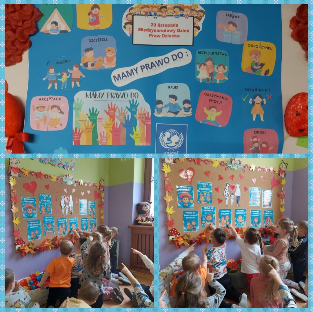 W tym dniu "Biedroneczki" uczestniczyły w zajęciach o Prawach Dziecka. Z wykorzystaniem prezentacji multimedialnej, która przybliżyła im w przystępny sposób termin "co to są prawa dziecka" przedszkolaki poznały swoje prawa. Dzieci wskazały te, które najbardziej im się podobają i na co dzień mają z nimi do czynienia. "Biedroneczki" wykonały wspólnie plakat ilustrujący "prawa dziecka - mam prawo do". Podsumowaniem tematu była piosenka o "Prawach dziecka", którą przedszkolaki próbowały zapamiętać i wspólnie zaśpiewać.