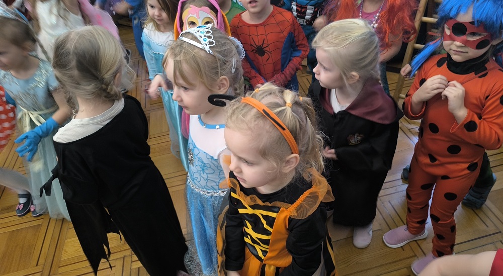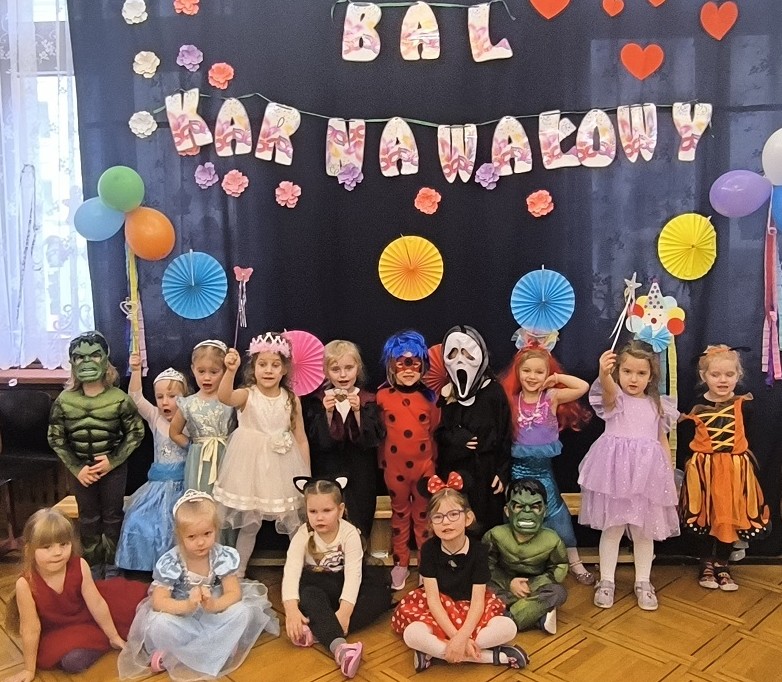 W lutym w naszym przedszkolu odbył się bal karnawałowy. Tego dnia już od rana w przedszkolu pojawiały się kolorowe postacie. Dzieci przebrane były za bohaterów znanych bajek. Na balu dzieci bawiły się przy dźwiękach swojej ulubionej muzyki, uczestniczyły w konkursach i zabawach. Dzieci świetnie się bawiły. Na sali podczas pląsów robiło się kolorowo, wszyscy bawili się wesoło, uśmiech nie znikał z twarzy mimo chwilowego zmęczenia. Wspólna zabawa przyniosła wiele radości dzieciom, a to było głównym celem tego balu.