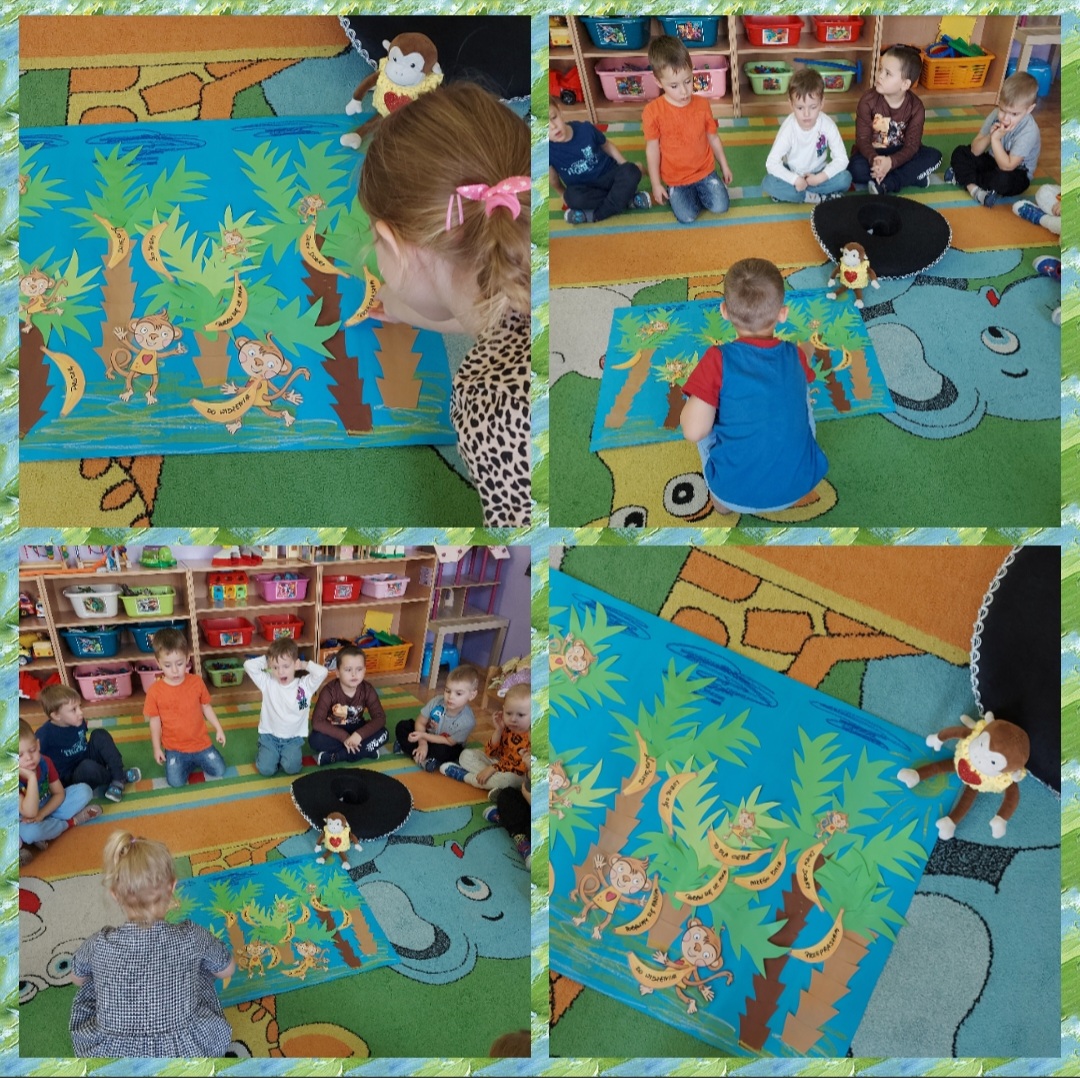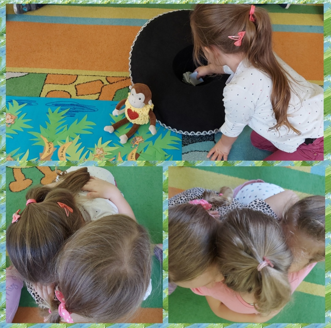 Zarówno w tym zadaniu jak i w realizacji kolejnych będzie nam zawsze towarzyszyła pluszowa maskotka - małpka Iwonka, która na chwilę zamieszkała w naszej grupie.