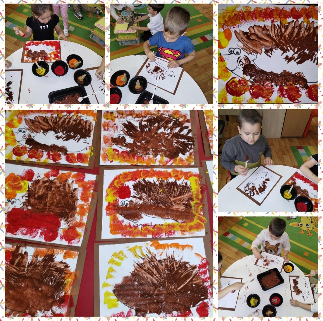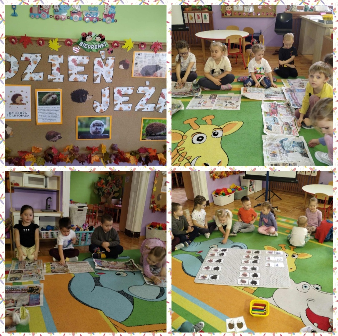"Biedroneczki" świętowały w listopadzie "Dzień jeża". Celem świętowania tego dnia było przypomnienie dzieciom, że jeże to zwierzęta znajdujące się pod ochroną. Przedszkolaki miały okazję poszerzyć wiadomości dotyczące środowiska naturalnego jeży, ich wyglądu, sposobu poruszania się, odżywiania oraz w jaki sposób przygotowują się do zimy. Dzieci oglądały film edukacyjny „Czy wiesz, że jeż”, rozwiązywały zagadki, uczestniczyły w zabawach ruchowych: „Na dywanie siedzi jeż”, „Jeżyk”, „Jadą jeże na rowerze”, przeliczały igły jeżyków. "Biedroneczki" wykonały również prace plastyczne, z wykorzystaniem farb i widelców - dzięki którym powstały kolczaste jeżyki.