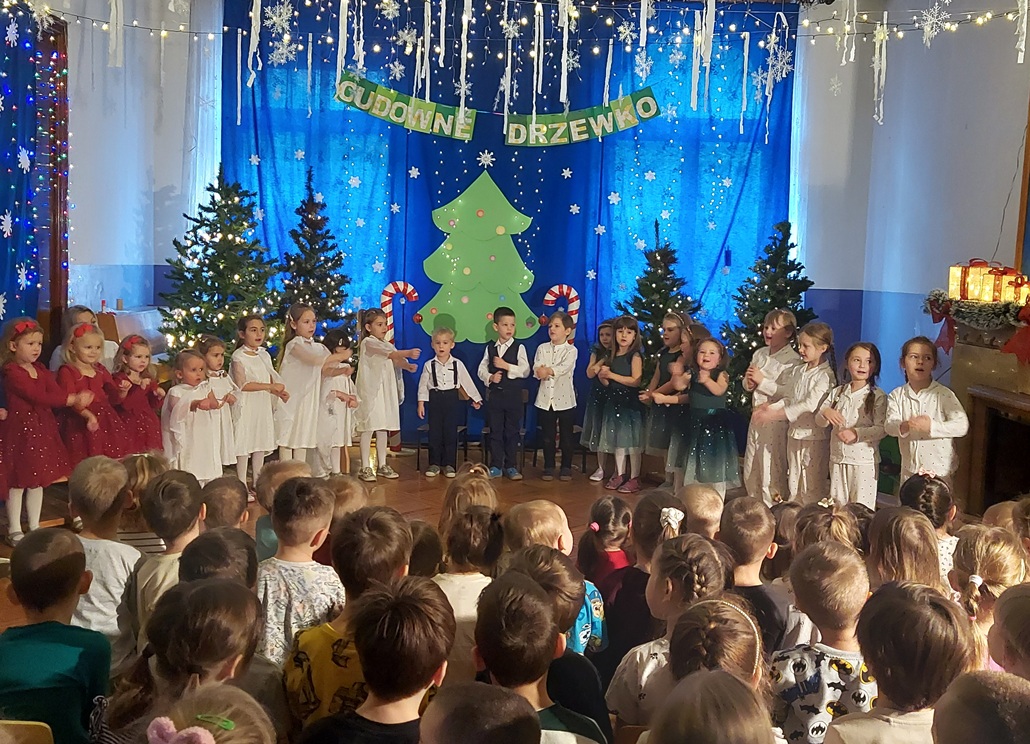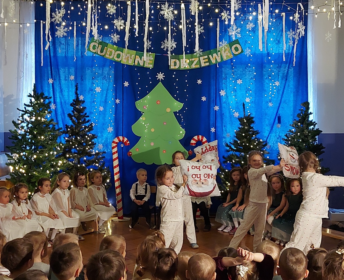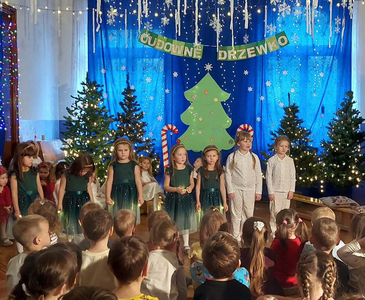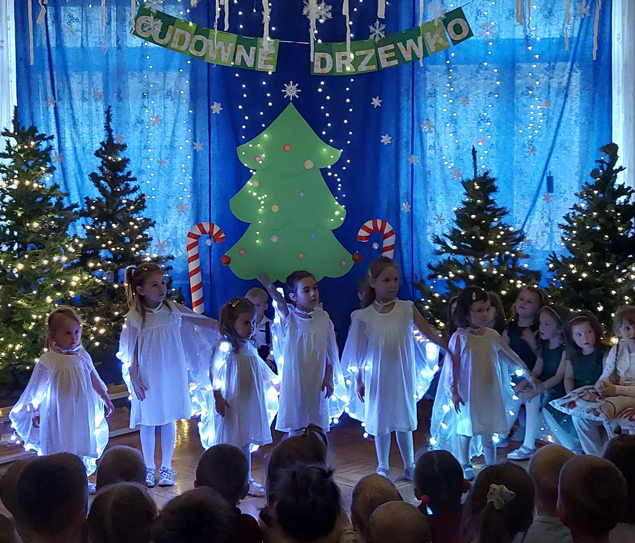 W naszym przedszkolu rozpoczął się sezon świąteczny związany z Bożym Narodzeniem. Dzieci z Koła Teatralnego wraz z panią dyrektor Olą oraz nauczycielką Pauliną przygotowały przedstawienie teatralne „Cudowne drzewko”.