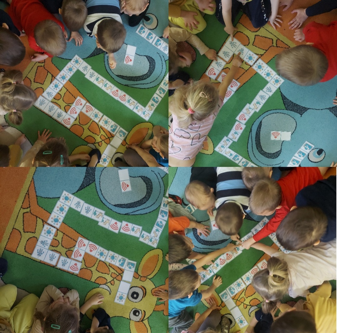 Podczas zabawy „Tworzymy sieć”- dzieci dowiedziały się czym jest Internet, który potrafi łączyć dzieci na całym świecie.