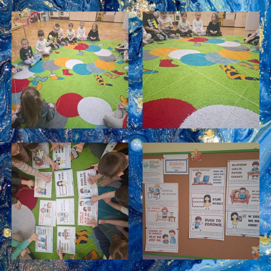 Dzień Bezpiecznego Internetu był dla naszych "Gwiazdeczek" odpowiednią okazją, aby porozmawiać z dziećmi na temat bezpieczeństwa w sieci. W ramach DBI poznawaliśmy podstawowe zasady bezpiecznego korzystania z Internetu poprzez quizy, gry, piosenki i filmy edukacyjne. Zajęcia miały na celu rozwijanie kreatywności i kompetencji cyfrowych u dzieci, w tym bezpiecznego i celowego wykorzystywania technologii informacyjno - komunikacyjnych. Ustaliliśmy wspólnie kodeks cyfrowy, który dzieci zobowiązały się przestrzegać i przekazać jego zasady rodzicom. Musimy pamiętać - Internet ma swoje dobre i złe strony.