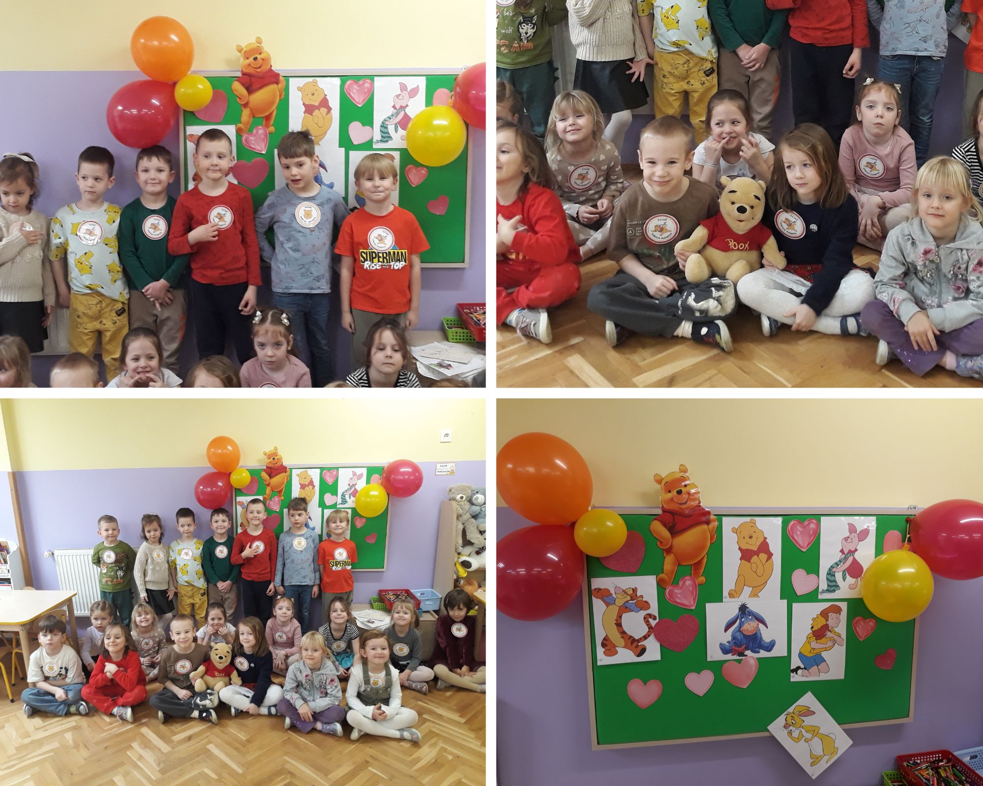 W styczniowy poniedziałek dzieci z naszej grupy odwiedziły grupę "Gwiazdeczek", aby wspólnie przenieść się do magicznego Stumilowego Lasu i razem świętować wyjątkowy "Dzień Kubusia Puchatka" - bohatera, który uczy nas, jak ważne są przyjaźń, życzliwość i radość z bycia razem.