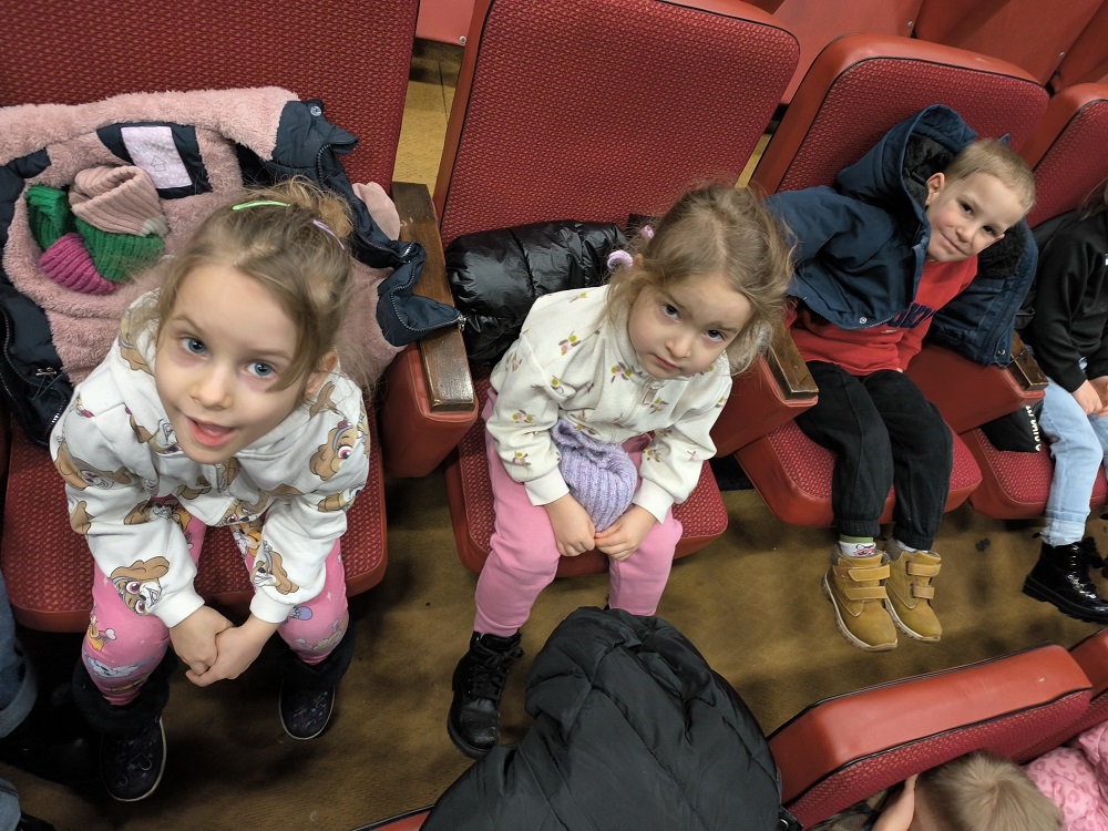Pod koniec stycznia „Kotki” udały się do Teatru „Dom”. Na początku przedstawienia na scenie pojawiła się wesoła rodzina Tralalińskich – sympatyczne małżeństwo z córką i synem, którzy spóźnili się na pociąg. Pojawił się również bardzo miły pan konduktor – narrator przedstawienia, który zapewnił o następnym przyjeździe pociągu. Podczas czekania na kolejny pociąg, zarówno rodzina Tralalińskich jak i pan konduktor zabierają widzów w niezwykłą podróż pełną muzyki, humoru i rymów. Spektakl ten był barwną i dynamiczną interpretacją znanych wierszy Juliana Tuwima, takich jak: „Zosia Samosia” „Okulary”, „Słoń Trąbalski”, „Abecadło”, „Rzepka”, „Ptasie radio”, „Pan Maluśkiewicz i wieloryb”. Kolorowe kostiumy, scenografia i pełne humoru przedstawienie oraz bezpośredni kontakt z widzem sprawiły, że dzieci śmiały się i śledziły akcję z ogromnym zaciekawieniem. Spektakl ten był dla dzieci nie tylko cudowną zabawą, ale również cenną lekcją poezji i sztuki teatralnej, która rozbudzała wyobraźnię. „Lokomotywa Pana Tuwima” to piękna podróż po świecie poezji i twórczości Juliana Tuwima. „Kotki” wróciły z wyjścia zadowolone i z uśmiechami na buziach.