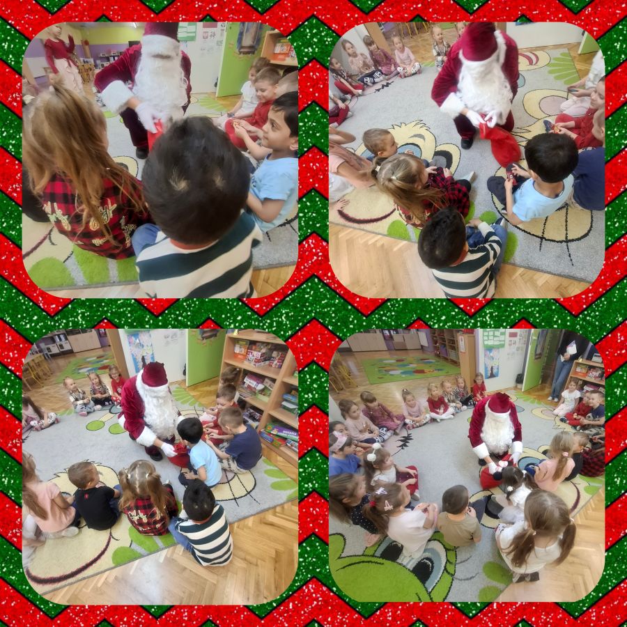 Mikołajki w tym roku wypadały w sobotę, dlatego nasza grupa świętowała je już w piątek. Dzieci uczestniczyły w różnych zabawach muzycznych i ruchowych. Niespodzianką dla dzieci była wizyta Świętego Mikołaja, który zaskoczył swoją obecnością i słodkim poczęstunkiem. Dzieci obiecały iż będą grzeczne cały kolejny rok.