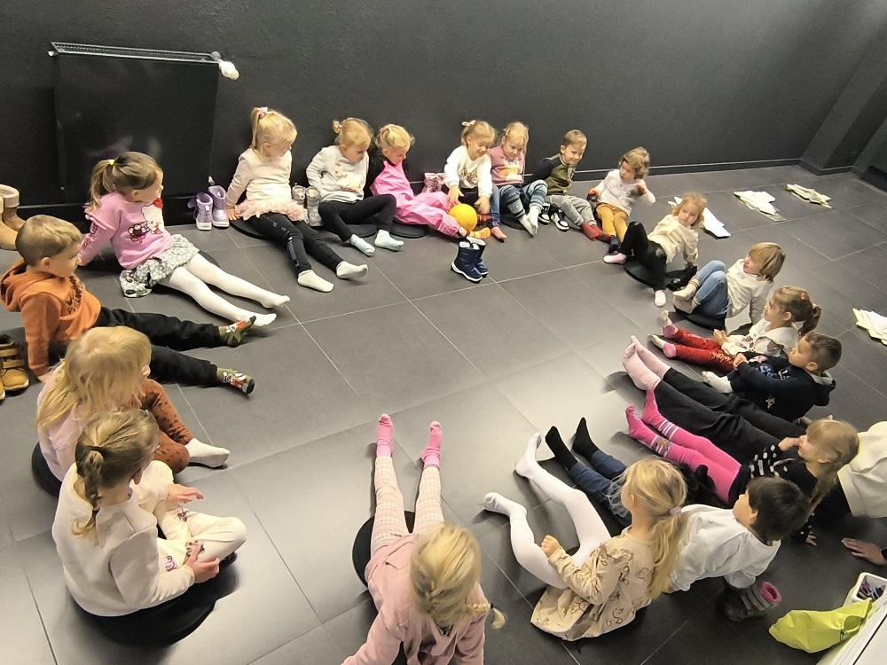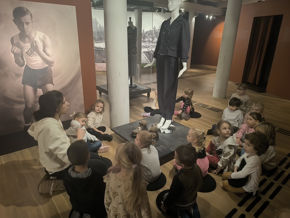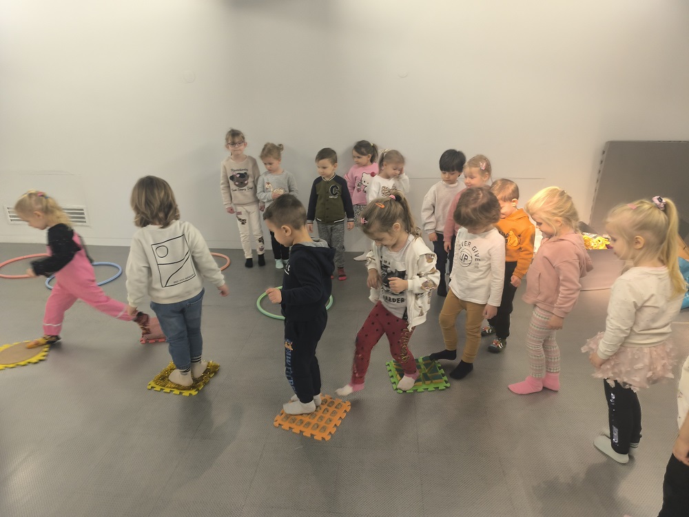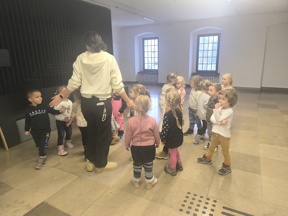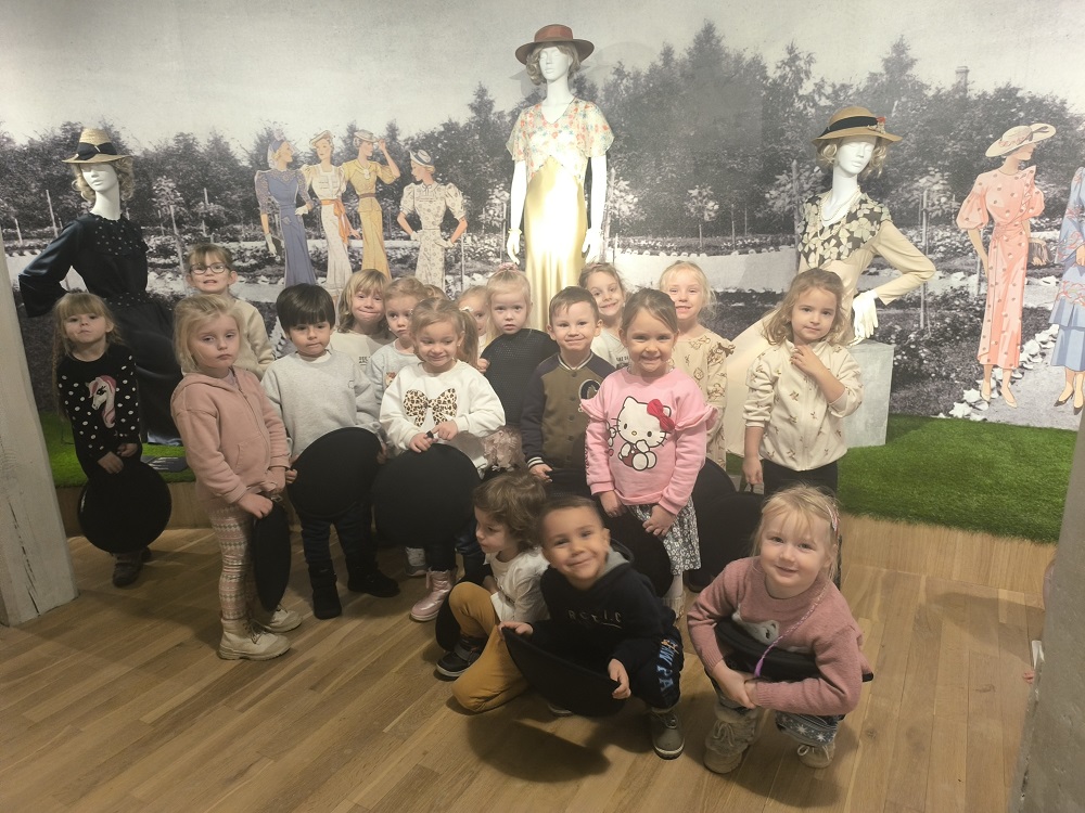 W listopadzie nasza grupa wybrała się na warsztaty „Na czym stoimy” do Centralnego Muzeum Włókiennictwa w Łodzi. W trakcie warsztatów dzieci oglądały wystawę „Łódzkie mikrohistorie. Ludzkie mikrohistorie”. Na warsztatach odpowiedziały sobie na pytania - Gdzie nas niosą nogi? Do czego służą buty? Czy można używać jednej pary obuwia do wszystkiego? Zobaczyły również wiele rodzajów butów i zastanowiły się nad tym, kiedy i gdzie można je nosić. „Kotki” przetestowały również różne sposoby chodzenia i sprawdziły do czego jeszcze mogą posłużyć im stopy. Przeszły się również na boso po miękkich pomponach i twardych guzikach. Na koniec odrysowały swoją stopę i ozdobiły ja różnymi materiałami. Dzieci świetnie się bawiły, z uśmiechem wróciły do przedszkola.