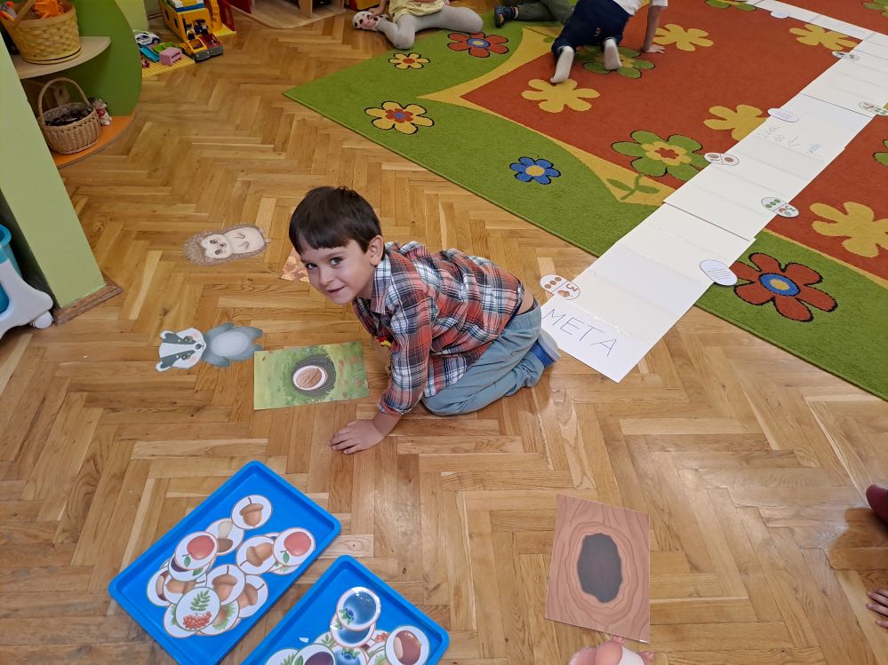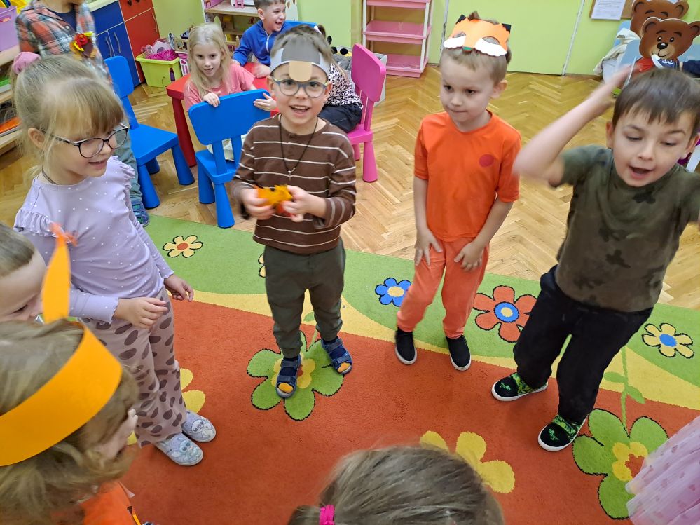 Jesień za oknem, dlatego też nasza grupa postanowiła ją powitać w przedszkolu. Dzieci wykorzystując jesienne zbiory oraz ilustracje grały w logiczną grę planszową karmiąc zwierzęta. Uczestniczyły w zabawach integracyjnych z wykorzystaniem piosenek i rekwizytów. Chętne dzieci, a było ich naprawdę sporo stanęły na wysokości zadania i wzięły udział w konkursie recytatorskim prezentując jesienne wiersze. Występ był cudowny - został nagrodzony brawami, dyplomami oraz drobnymi nagrodami.
