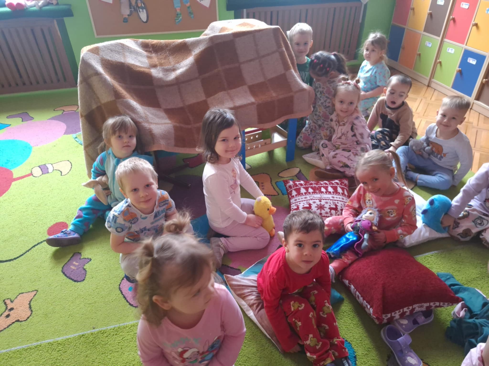 W poniedziałek 26 stycznia dzieci w cały przedszkolu ubrały się w piżamki? Co to? To wspaniała zabawa, ale także akcja organizowana przez fundację „Gdy liczy się czas”. Jej celem jest solidarność z dziećmi przebywającymi na oddziałach onkologicznych, dla których piżama jest codziennym strojem. Akcja uczy empatii i świadomości o nowotworach u dzieci. Przedszkolaki miały paradę strojów, bitwę na poduszki i inne zabawy, które uprzyjemniały dzieciom czas spędzony w przedszkolu.