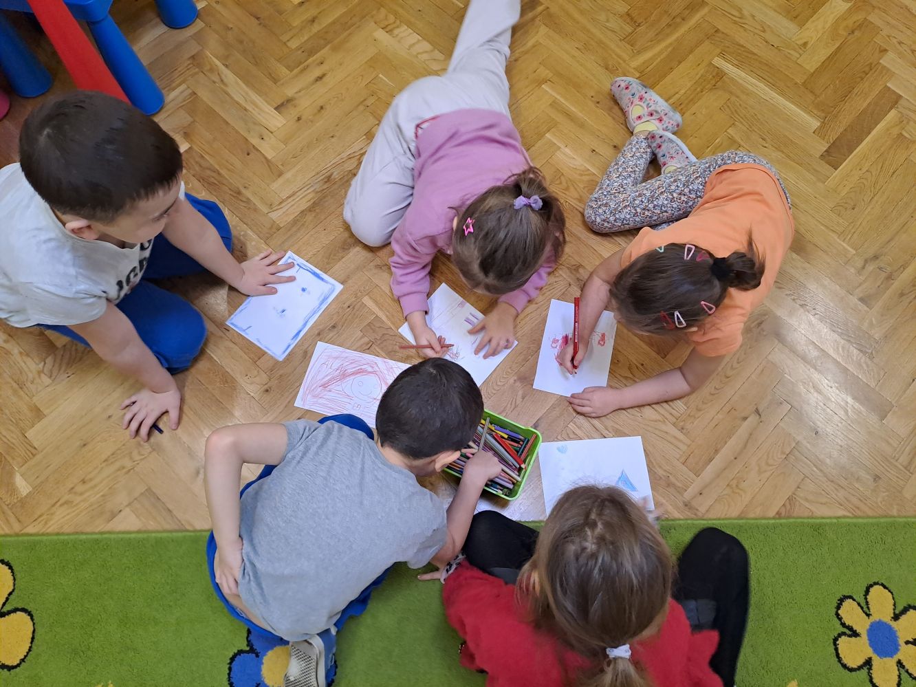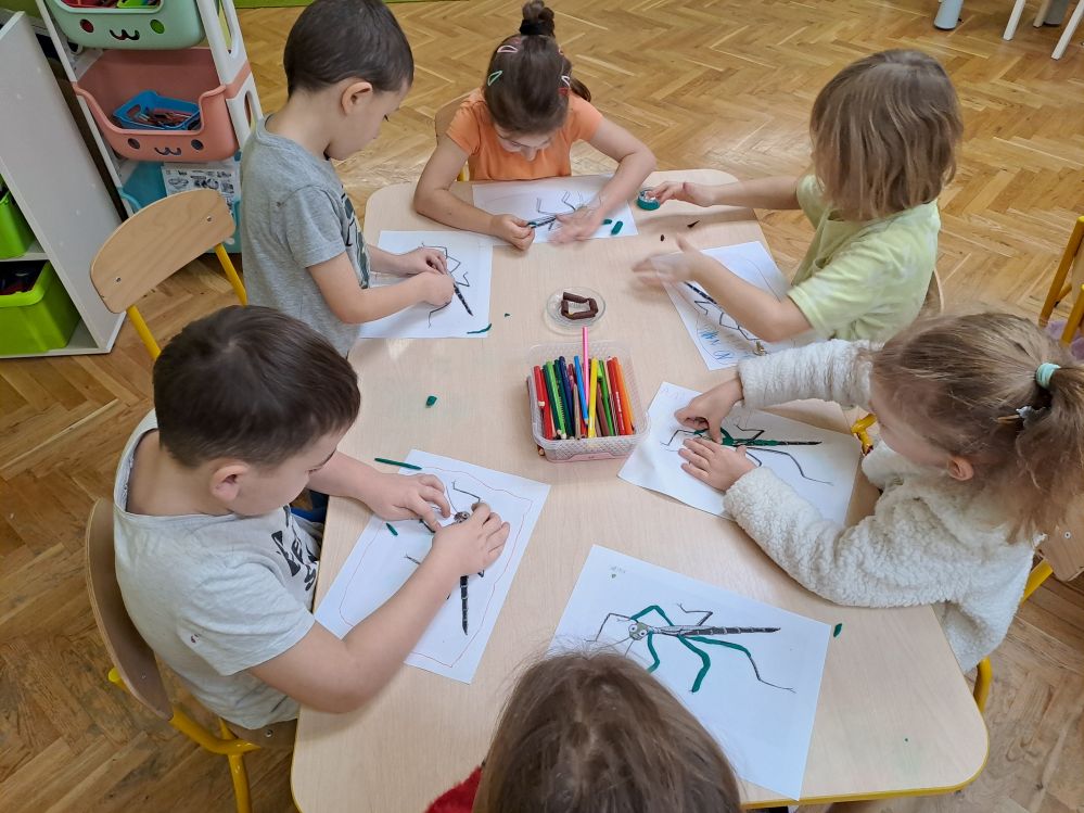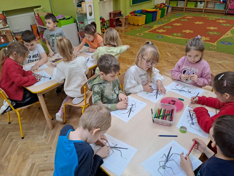 W naszej grupie realizowany jest program „Przyjaciele Zippiego”, którego celem jest promocja zdrowia emocjonalnego. Dzieci już kolejny raz spotkały się z sympatycznym patyczakiem o imieniu Zippi. Ostatnie nasze zajęcie dotyczyło zazdrości. Prowadzone były rozmowy w oparciu o ilustracje, treść opowiadania. Dzieci rysowały sytuacje, w której czują się zazdrosne. Na zakończenie każdy wykonał swojego patyczaka.