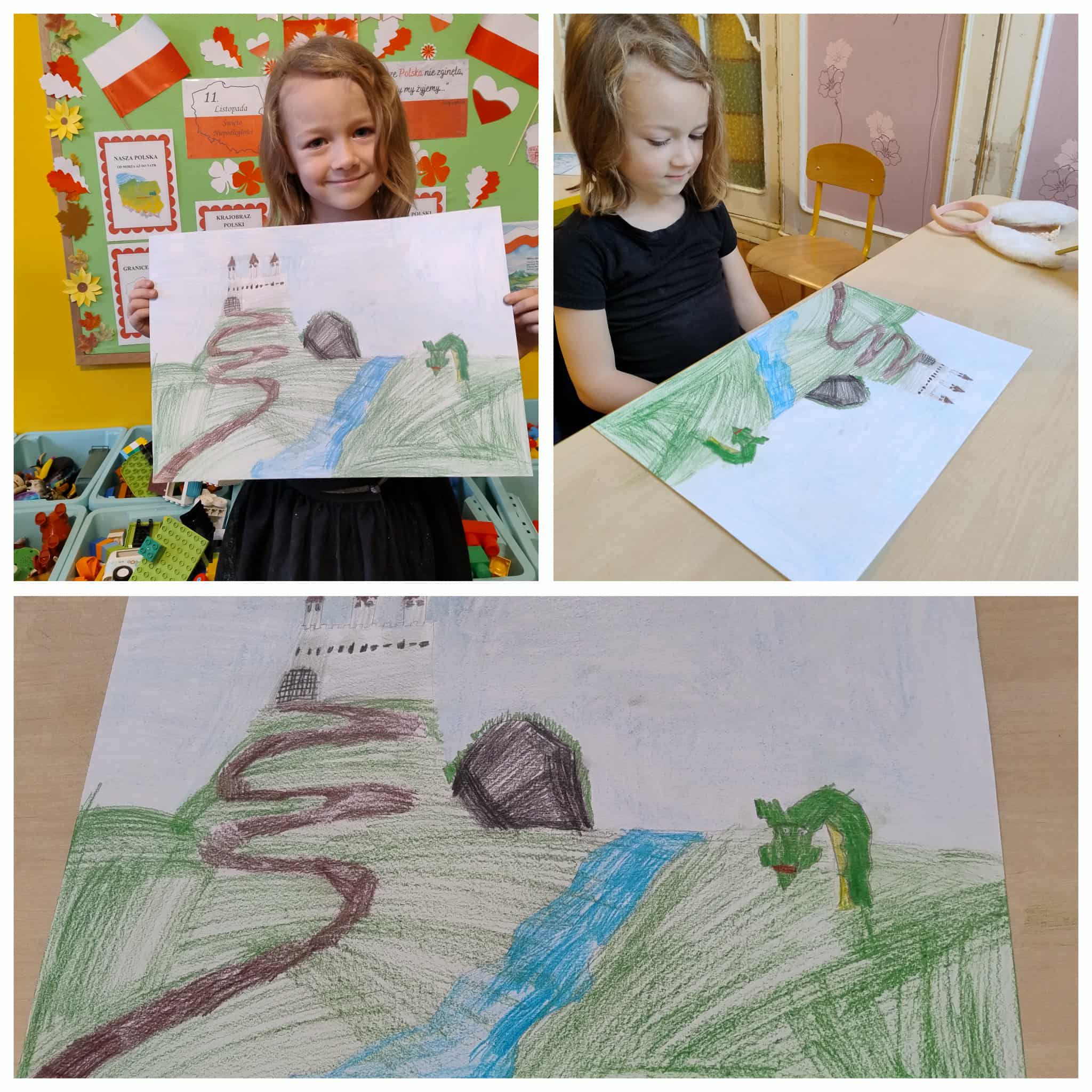 Reprezentantki naszej grupy - Nadia i Maja - wzięły udział w konkursie plastycznym „Przedszkolak poznaje Polskę”, którego organizatorem było Przedszkole Miejskie nr 131 w Łodzi. Celem konkursu było pokazanie ciekawych miejsc w Polsce, rozwijanie wrażliwości estetycznej oraz rozwijanie zainteresowań twórczych. Nadia wykonała pracę pt. „Morskie oko”, a Maja „ Gród krakowski”.