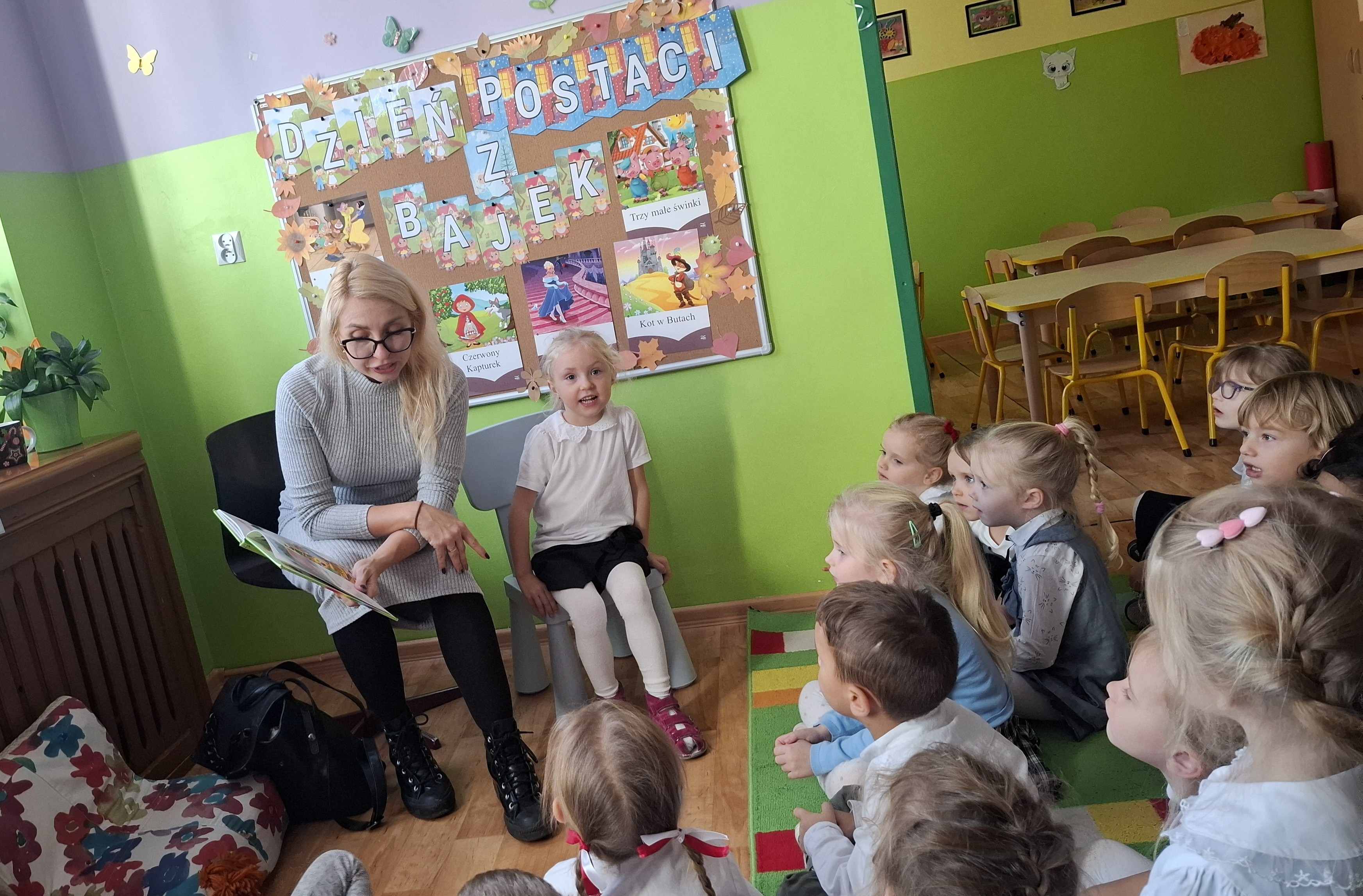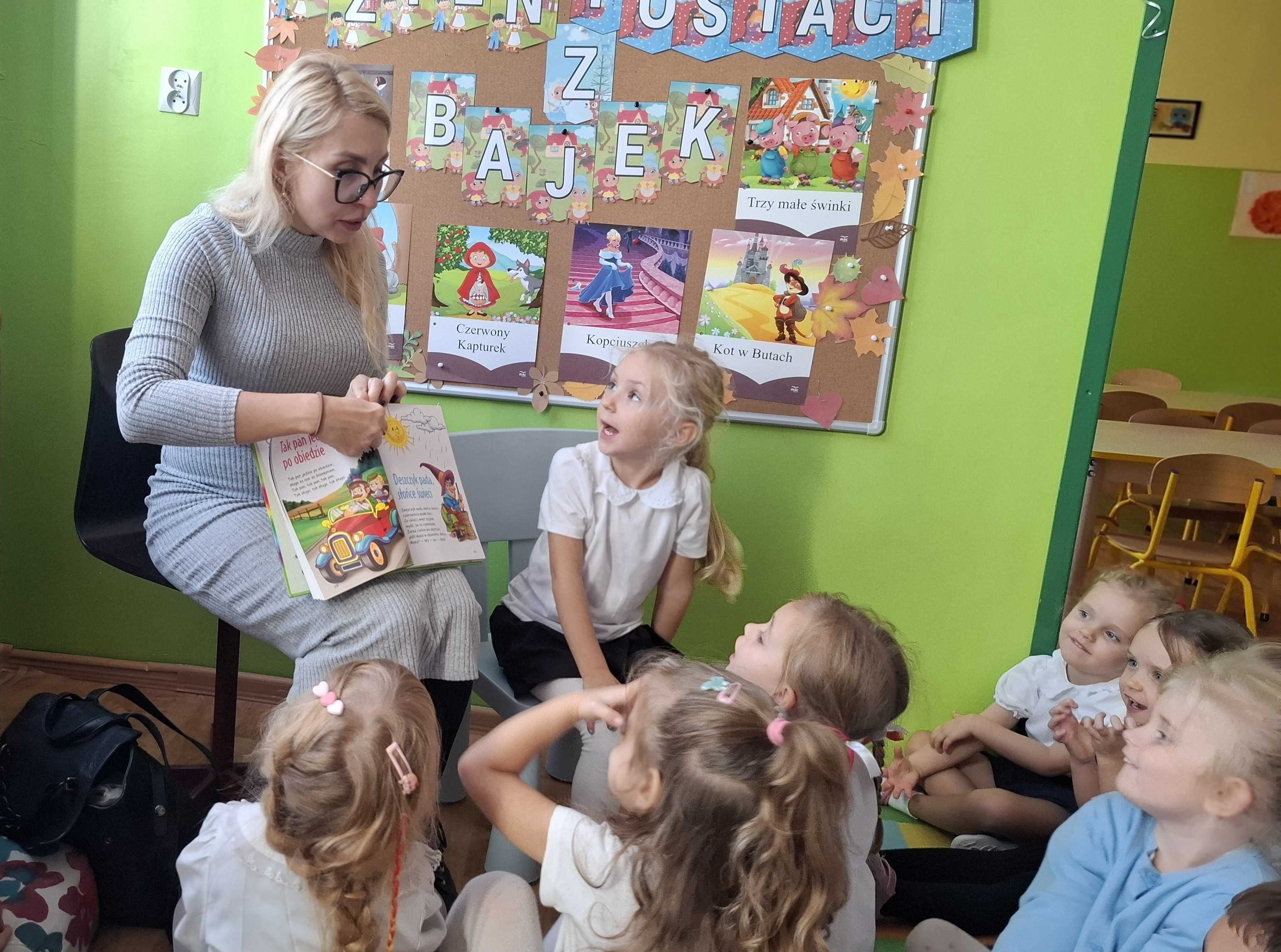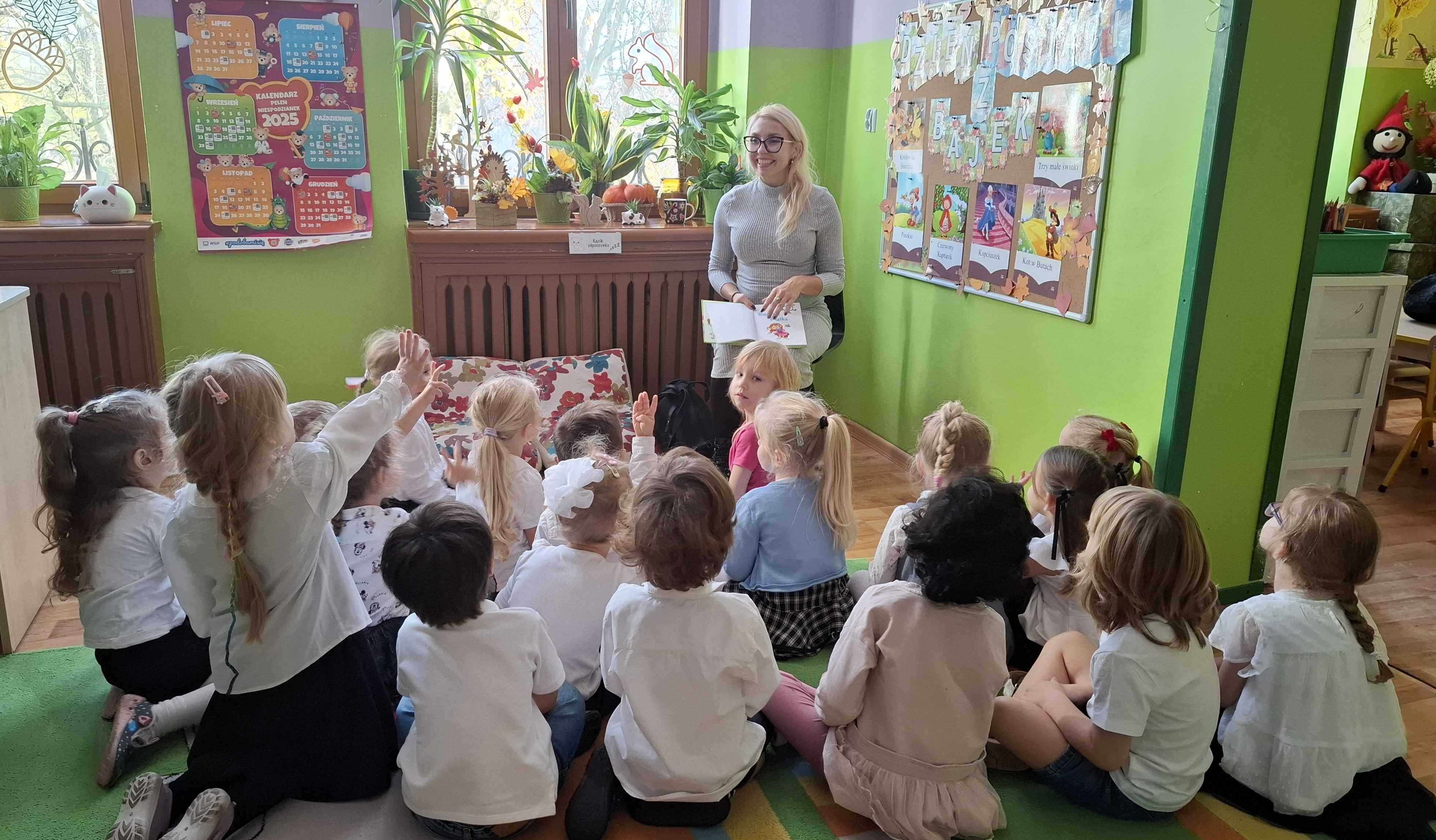 W pierwszym tygodniu listopada dni upłynęły nam w tematyce bajek, baśni, wierszy dla dzieci. Zaprosiliśmy Rodziców do spotkań czytelniczych z przedszkolakami z naszej grupy. Naszym pierwszym gościem była pani Sylwia mama Miry. Dzieci przywitały miłego gościa i bardzo ucieszyły się na wspólne spotkanie. Mama Miry czytała dzieciom książkę „Wierszyki 4-latka”.
