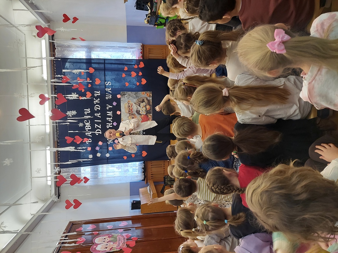 Zimową porą nasze przedszkole odwiedził Pan Witek z kolejną odsłoną audycji muzycznej. Tematyką spotkania było "Karnawałowe szaleństwo" - czyli rozmowy o Sylwestrze, Nowy Roku, zabawach tanecznych oraz upływającym czasie .