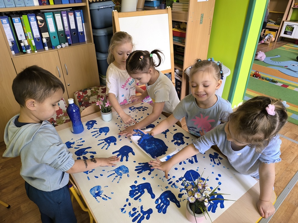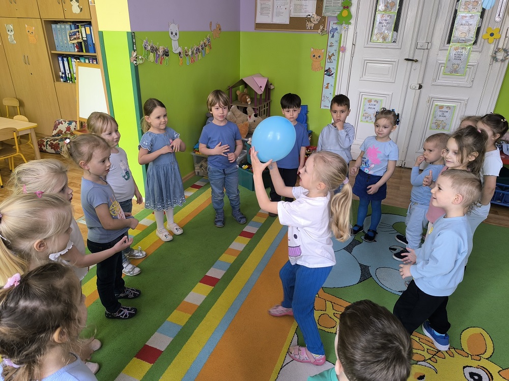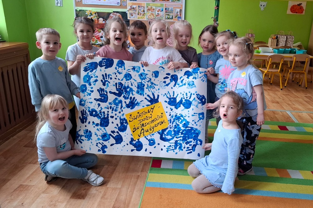 W dniu 2 kwietnia nasza grupa obchodziła Światowy Dzień Autyzmu. Jego głównym celem jest podnoszenie świadomości społecznej na temat autyzmu. Tego dnia wszystkie dzieci ubrały się na niebiesko. To wyraz solidarności z osobami z autyzmem. Aby dowiedzieć się czegoś więcej na temat autyzmu słuchaliśmy bajki „Chłopiec w żółtych słuchawkach”, która w prosty sposób zobrazowała nam jak funkcjonuje dziecko z autyzmem ."Kotki" tego dnia bawiły się niebieskim balonem dowiadując się jakie cechy mają dzieci autystyczne, na znak tolerancji znalazły w sali wszystkie niebieskie przedmioty, a koniec dzieci wykonały plakat odbijając swoje rączki w niebieskiej farbie. Celem obchodzenia tego dnia było zwiększenie świadomości społecznej na temat autyzmu oraz zwrócenie uwagi na potrzebę większej empatii i tolerancji dla odmiennych możliwości i potrzeb osób ze spektrum autyzmu.