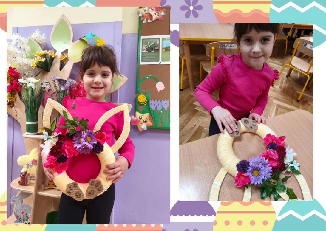 Reprezentantka naszej grupy wzięła udział w konkursie plastyczno-technicznym zorganizowanym przez Przedszkole Miejskie Nr 159 w Łodzi „Dekoracja wielkanocna”. Oliwia, z ogromnym zaangażowaniem, przygotowała swoją wyjątkową pracę. Wykazała się nie tylko kreatywnością, ale także dużą starannością i wyobraźnią, tworząc piękną, kolorową ozdobę nawiązującą do świątecznej atmosfery Wielkanocy.