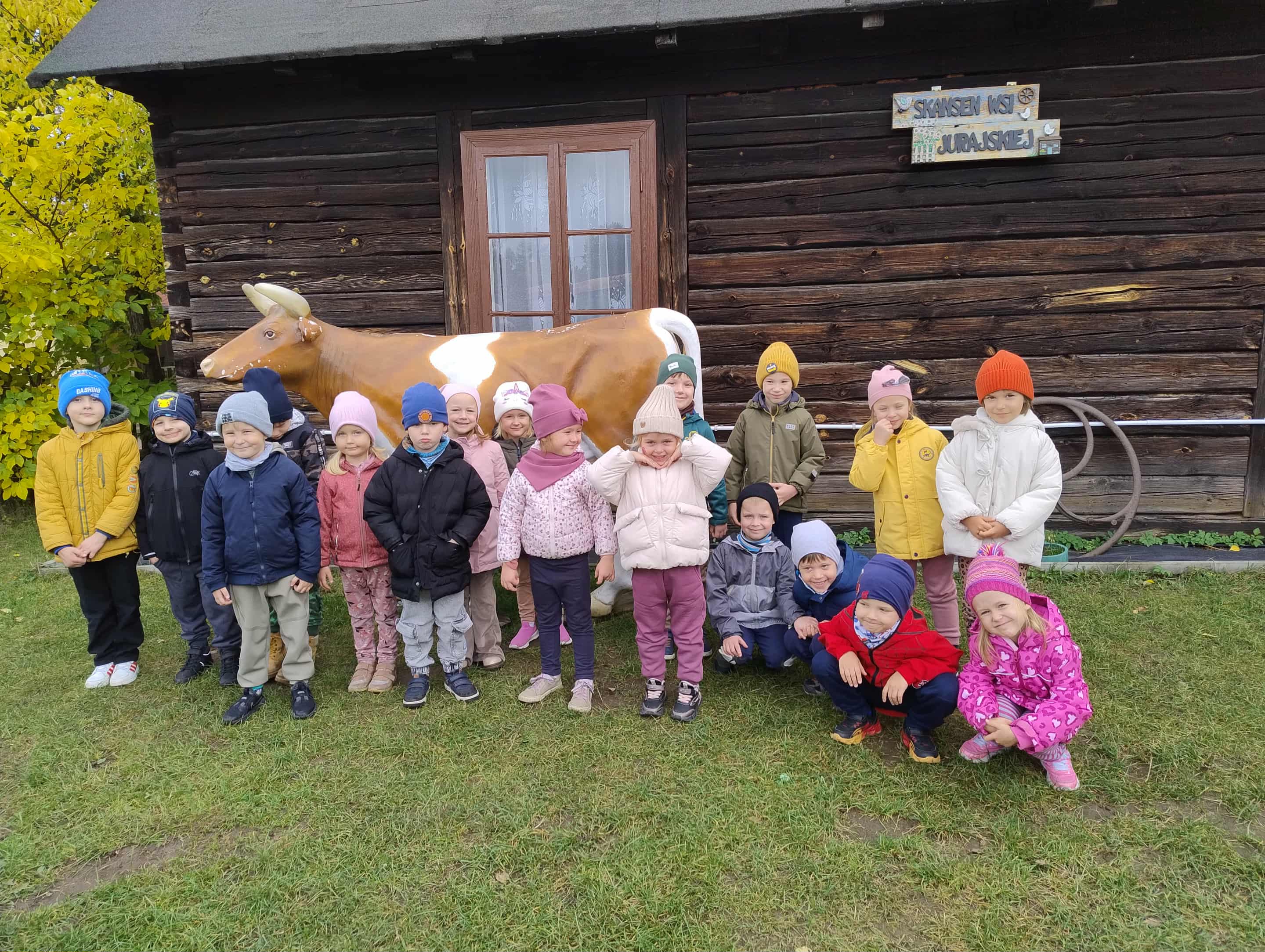 Podczas wycieczki zwiedzaliśmy Skansen Wsi Jurajskiej - oglądaliśmy gospodarstwo, jego zabudowania, wyposażenie domu. Poznaliśmy dawne przedmioty jakimi posługiwali mieszkańcy w domu i w gospodarstwie: cep, młockarnia, żarna do mielenia ziaren.