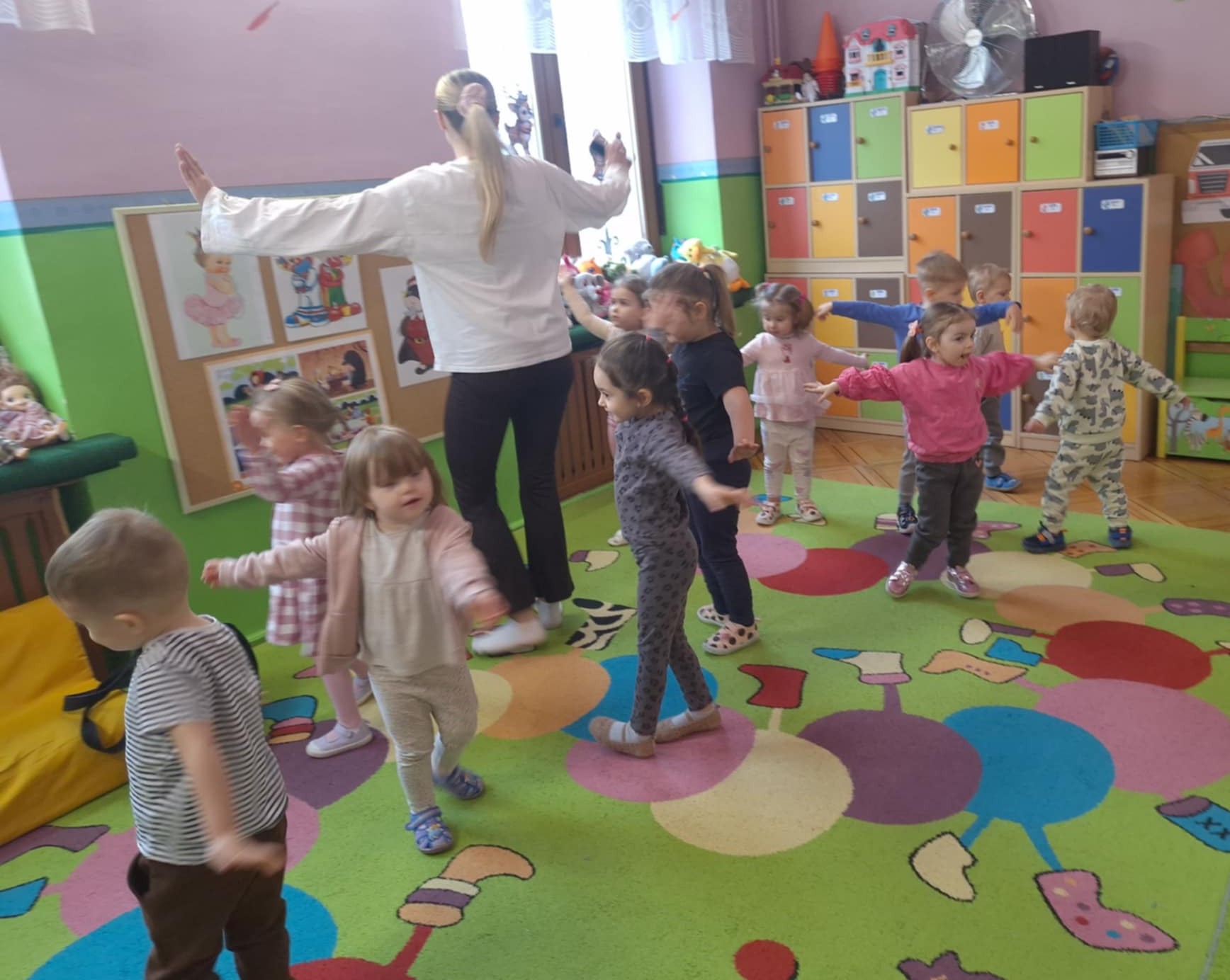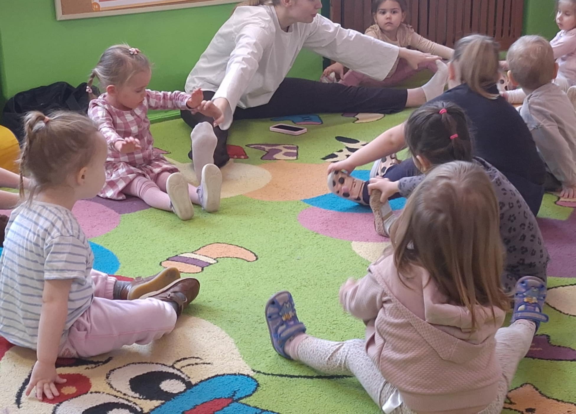 W lutym w naszej grupie odbyły się zajęcia taneczne, które dzieci bardzo lubią. Podczas części wstępnej dzieci rozgrzewają ciało. Są to ćwiczenia rozciągające, po których dzieci przystępują do nauki robienia tzw. haczyków. Następnie krótki układ taneczny. Po tańcu była zabawa figurki z podkładem muzycznym.